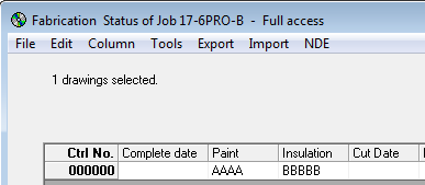 Given the above, if the fabrication status headers defined in your master files include an entry for “Paint”, this will cause “AAAA” to be written to the Paint column in fabrication status. Similarly, an entry for “Insulation” will cause “BBBBB” to be written to that column as shown below.